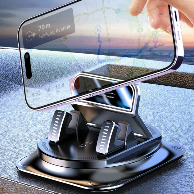 Diseñada para un equilibrio óptimo y una sujeción segura, la base ancha y pesada se adhiere perfectamente al salpicadero. This potente adhesivo, combinado con una física inteligente, guarenza una seguridad y estabilidad absolutas, evitando que se tambalee o resbale.