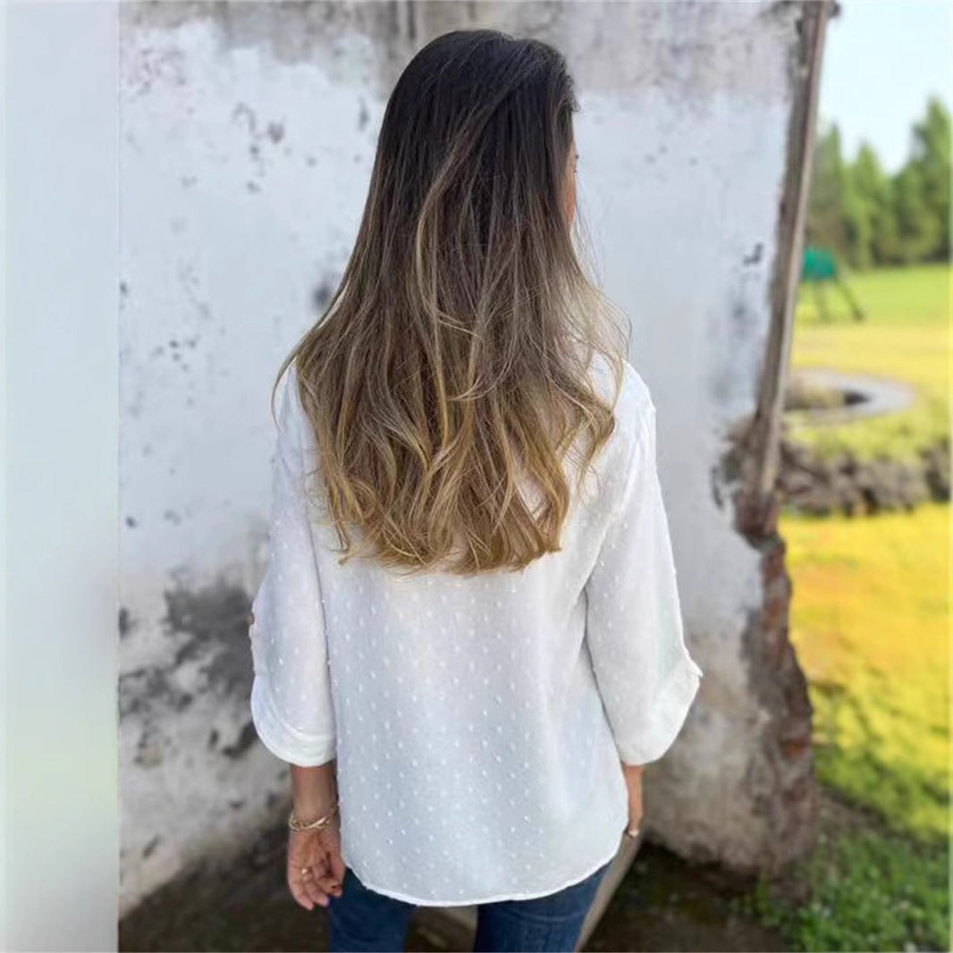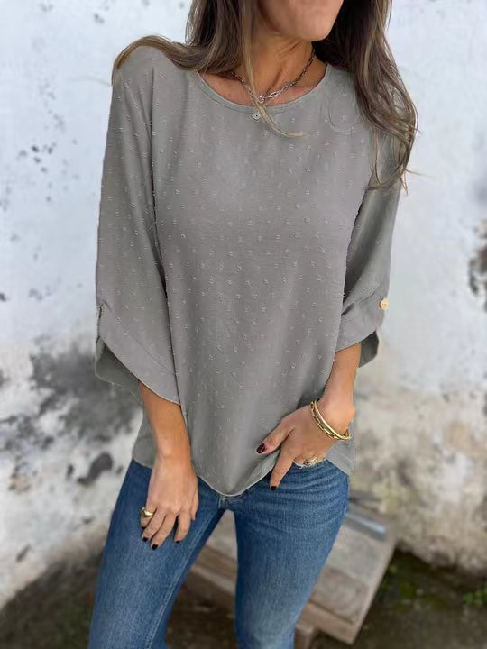 Contenido del paquete: 1 * Top informal de jacquard con cuello redondo para mujer