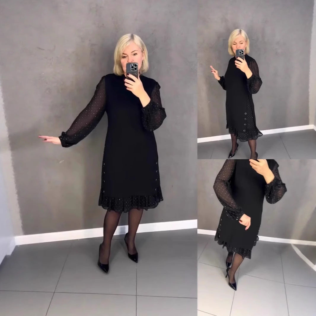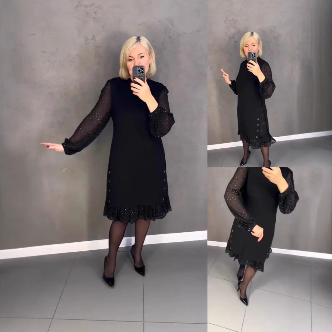 El paquete incluye: 1 * Vestido de diamantes de imitación de cuello redondo de color sólido para mujer