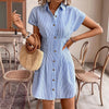 κομψό ριγέ φόρεμα πουκάμισο με κοντά μανίκια a-line για γυναίκες, υψηλή μέση με κουμπιά, καθημερινό καλοκαιρινό φόρεμα γραφείου σε ανοιχτό παστέλ, άνετο πολυεστγ πουκάμισο, καθημερινό φόρεμα πουκάμισο, υψηλή μέση, φόρεμα γραφείου, κομψό στυλ, τγ