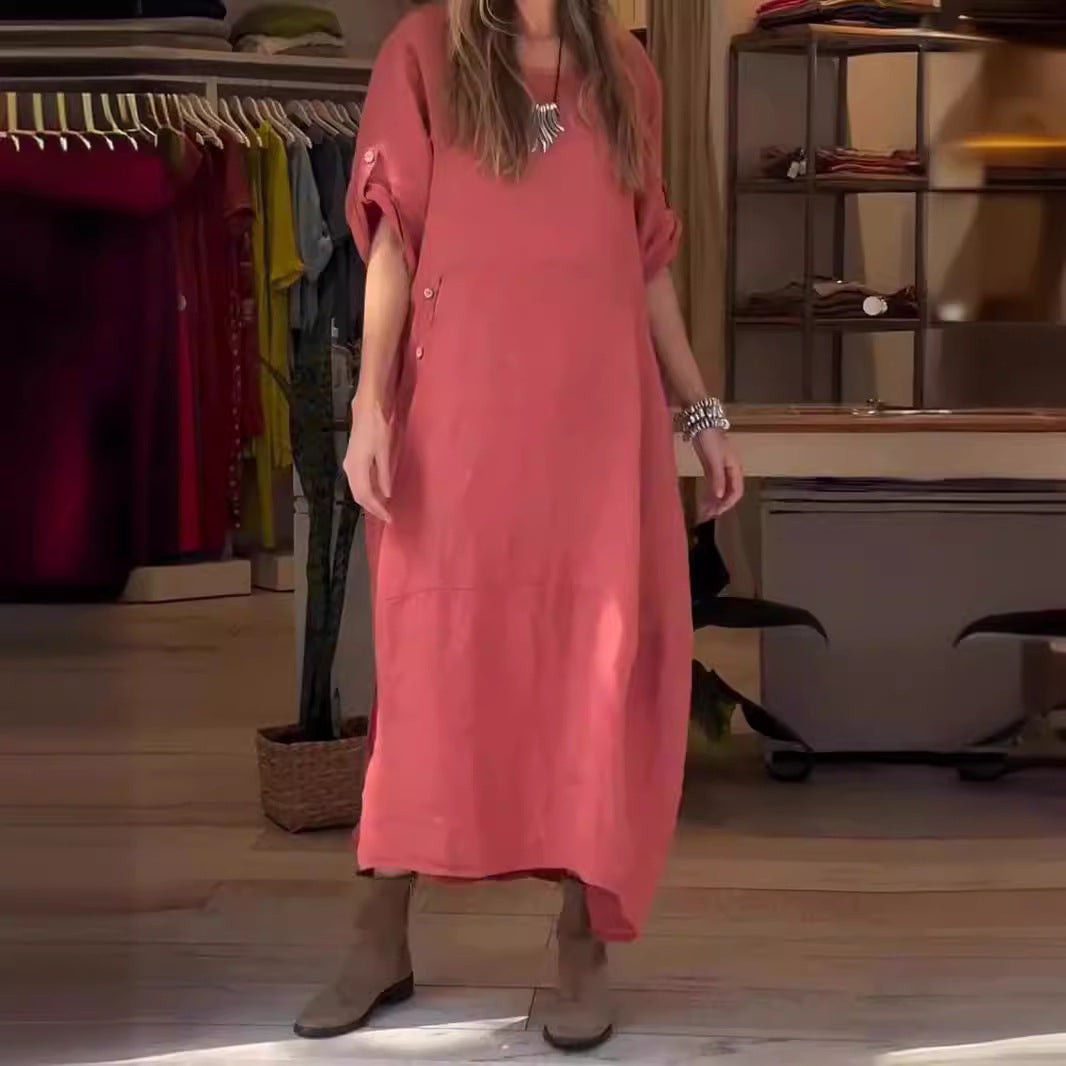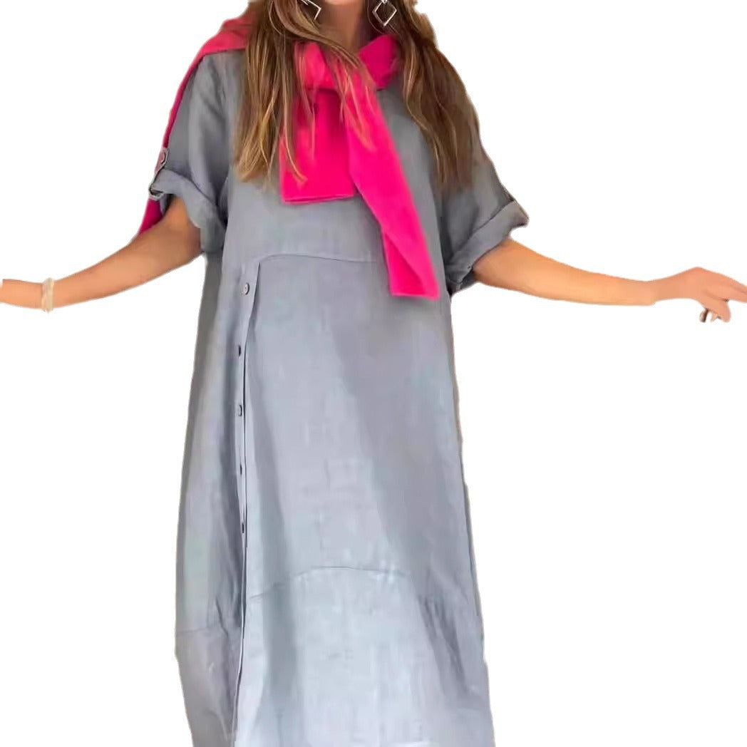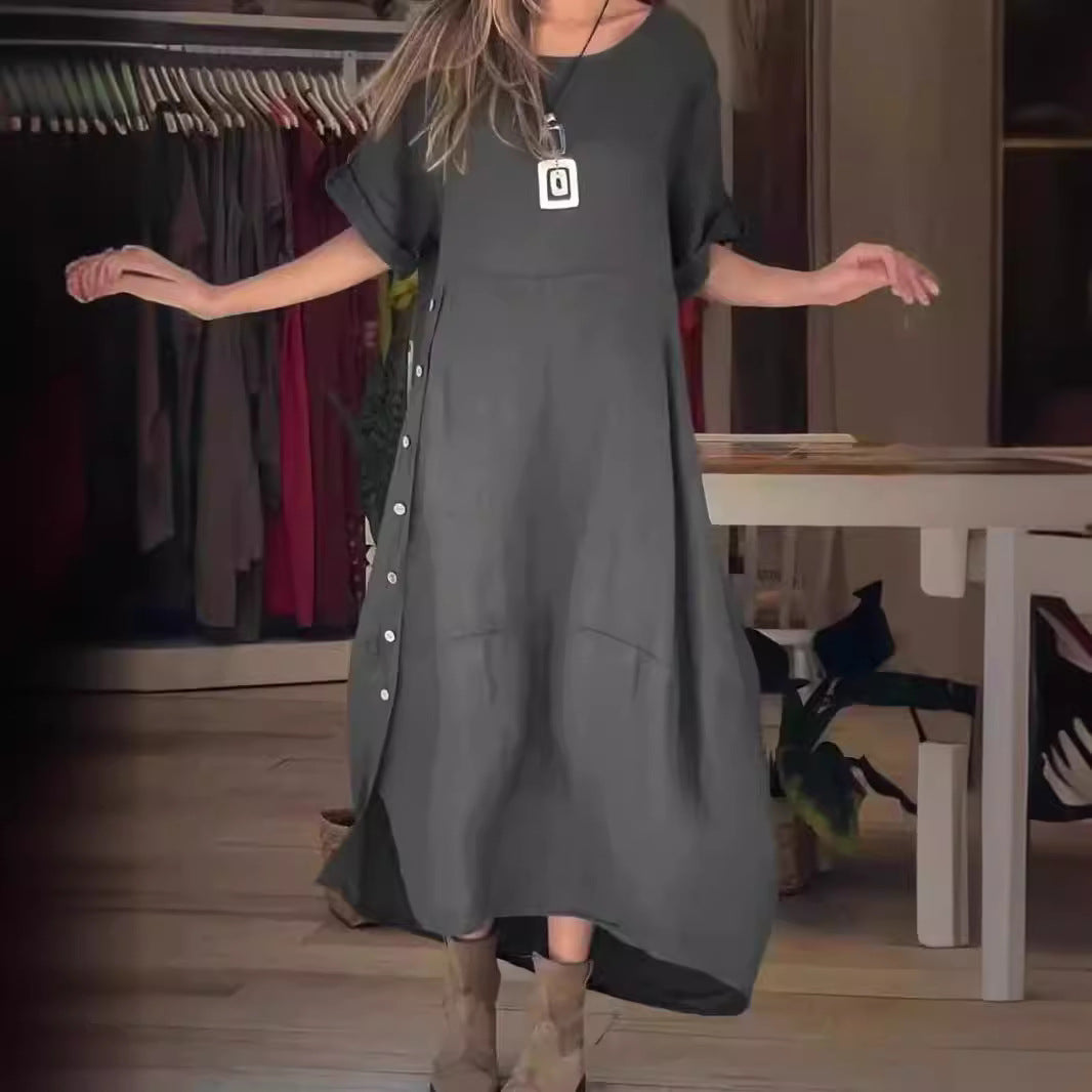 Kadınlar İçin Günlük A Kesim Düğmeli Yan Yırtmaçlı Elbise