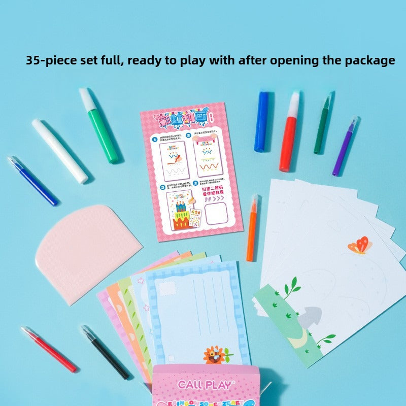 Simply scratch lightly with the included tool, and hidden colors instantly appear! From cute animals to buildings and birthday cakes, vibrant colors pop out, making the art process enjoyable and magical for kids.