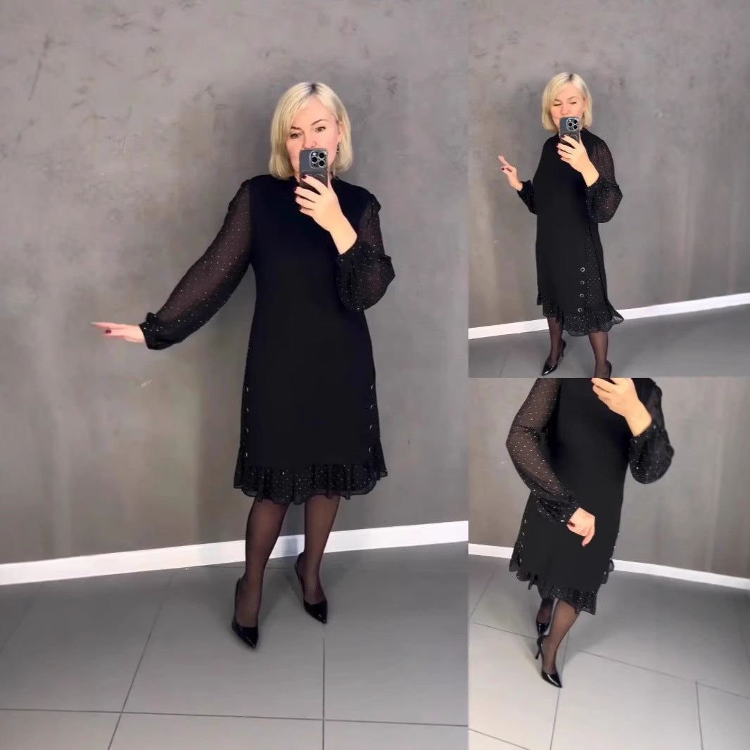 Paket içeriği: 1 * Kadın Düz Renk Yuvarlak Yaka Yapay Elmaslı Elbise