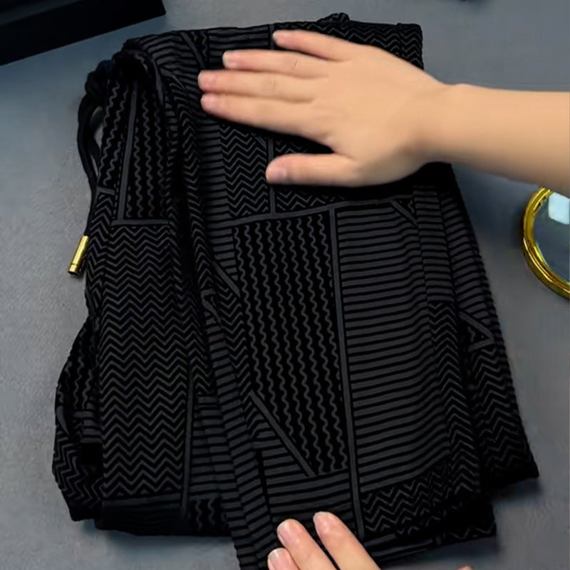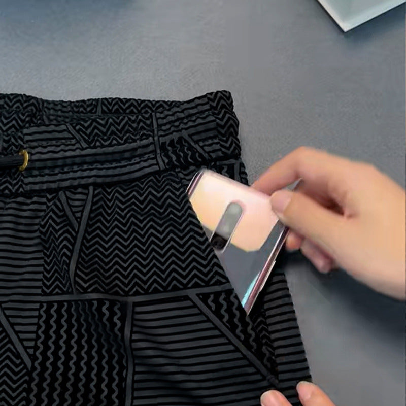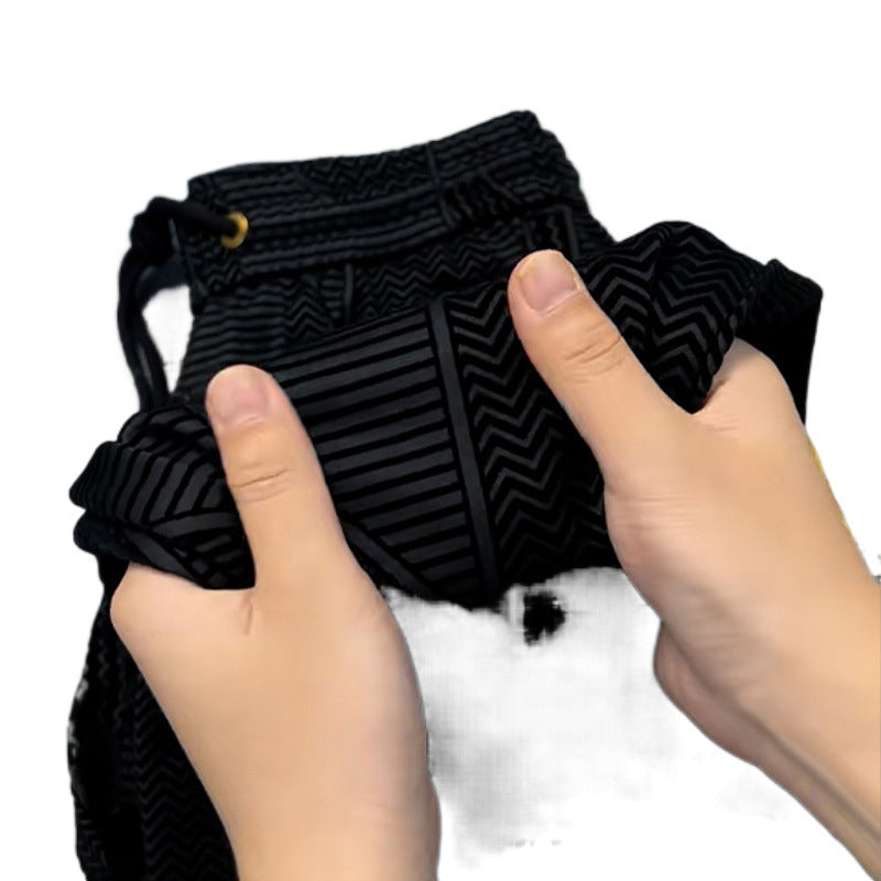 Elegant and comfortable men's long trousers – straight cut, elastic waistband and jacquard fabric, luxurious lightweight style