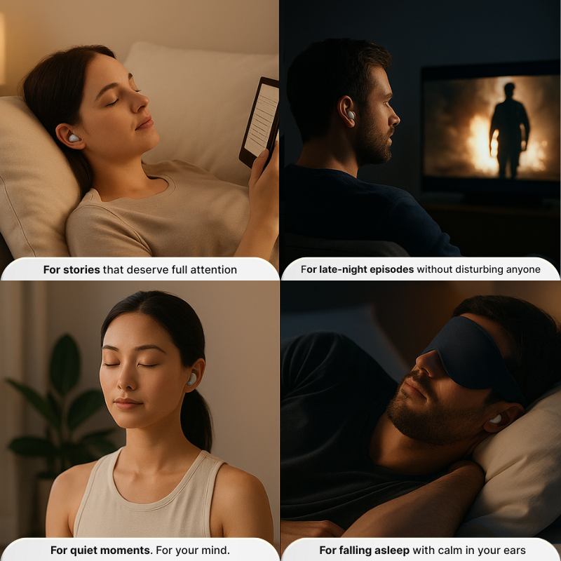 2025'in en yeni TAIR™ 6911'i, şimdiye kadarki en hafif ve en gizli kulaklıklarımızdır ve eksiksiz konfor ve özgürlük için tasarlanmıştır. İster film izleyin, ister meditasyon yapın veya bir arama yapın, TAIR™ 6911 ultra düşük gecikme süresi, kristal netliğinde ses ve neredeyse taktığınızı unutacağınız güvenli, görünmez bir uyum sunar.