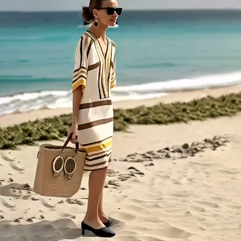 HER DURUMA UYGUN PLAJ STİLİ - Plaj tatilinden hafta sonu brunch'ına kadar, bu elbise birçok duruma zahmetsizce uyarlanabilir. Sade aksesuarlar veya sandaletler - her zaman şık, her zaman yaza hazır.